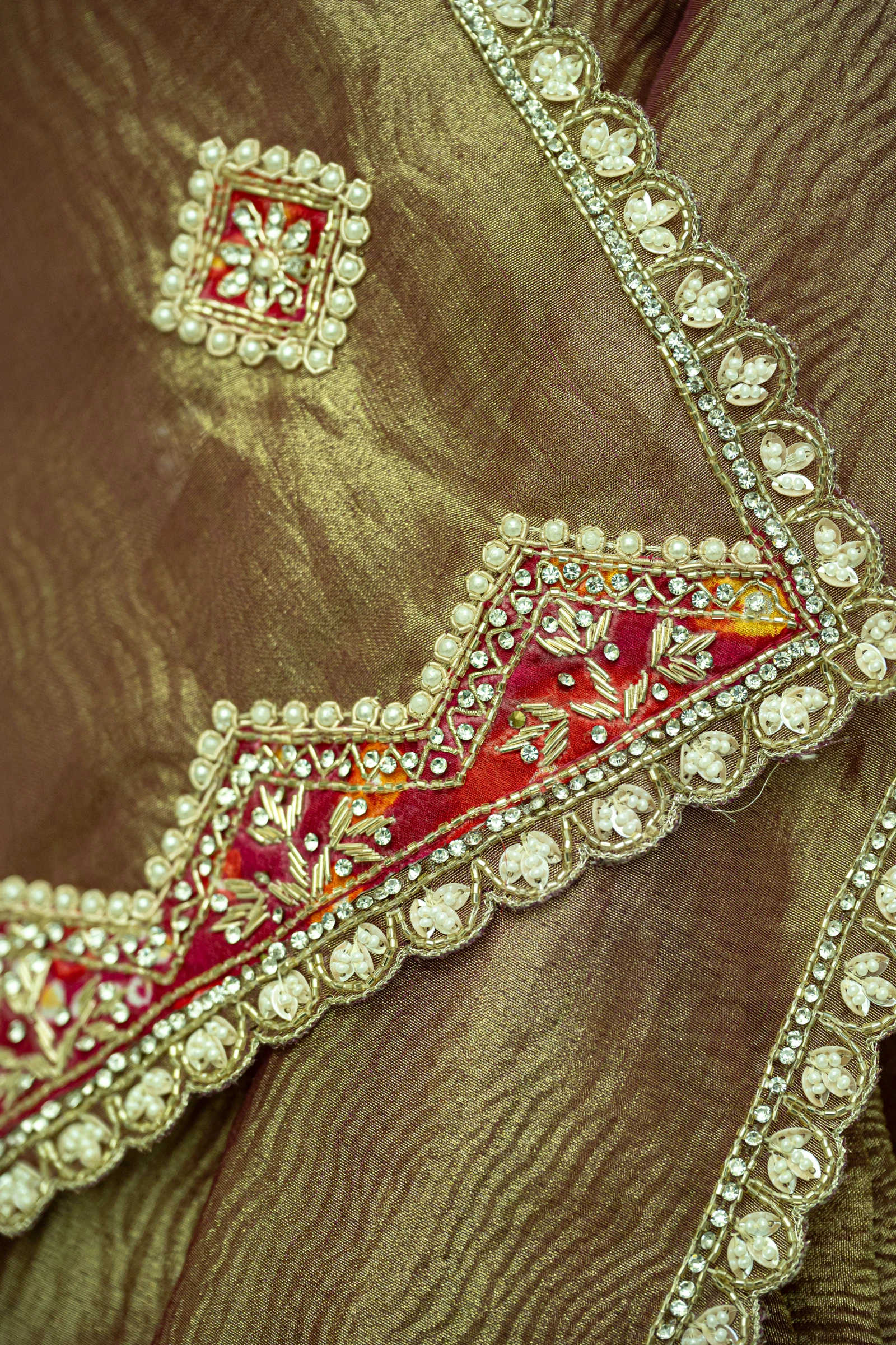Olive Green Crushed Tissue Hand-Embroidered Aari Work Designer Saree with Appliqué & Zardozi Work