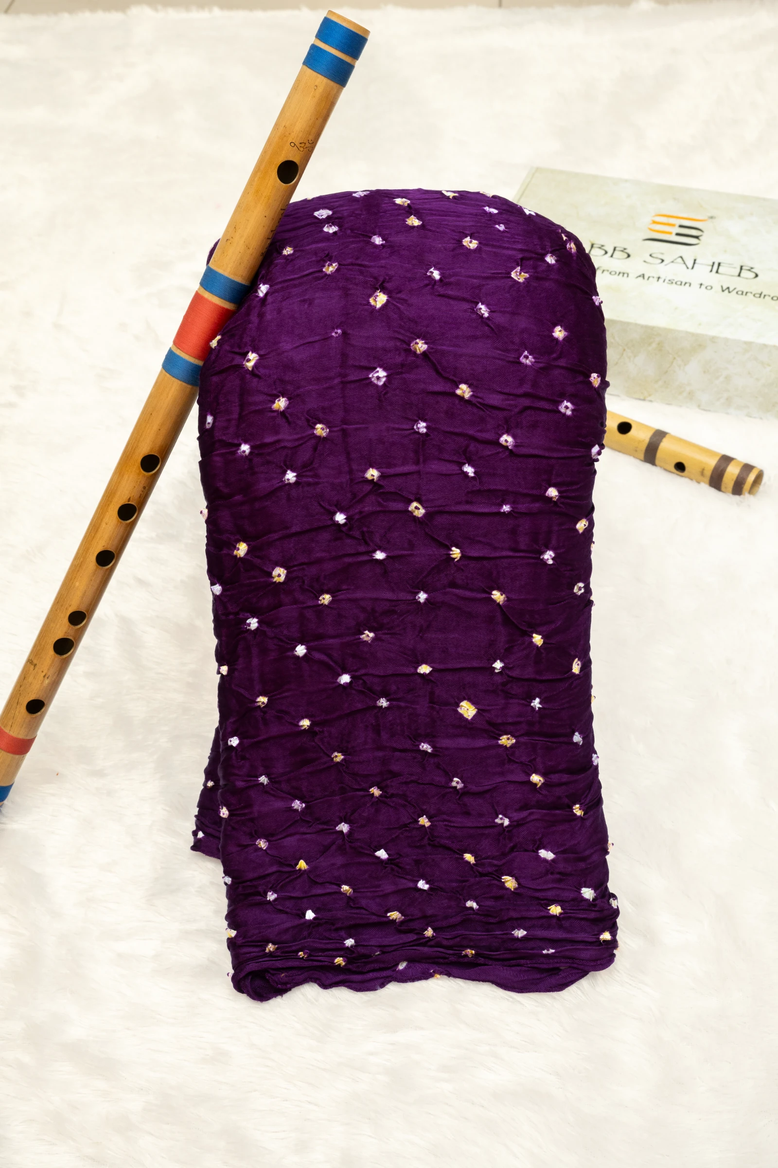 Purple Pure Gajji Silk Handcrafted Bandhani Saree with Lagdi Patta Pallu