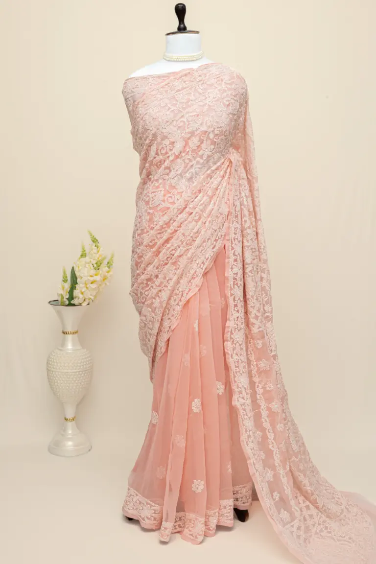• As this saree is hand embroidered using a traditional hoop technique, minor variations in fabric or embroidery may be present. These natural irregularities are not flaws but a true mark of handcrafted authenticity.
