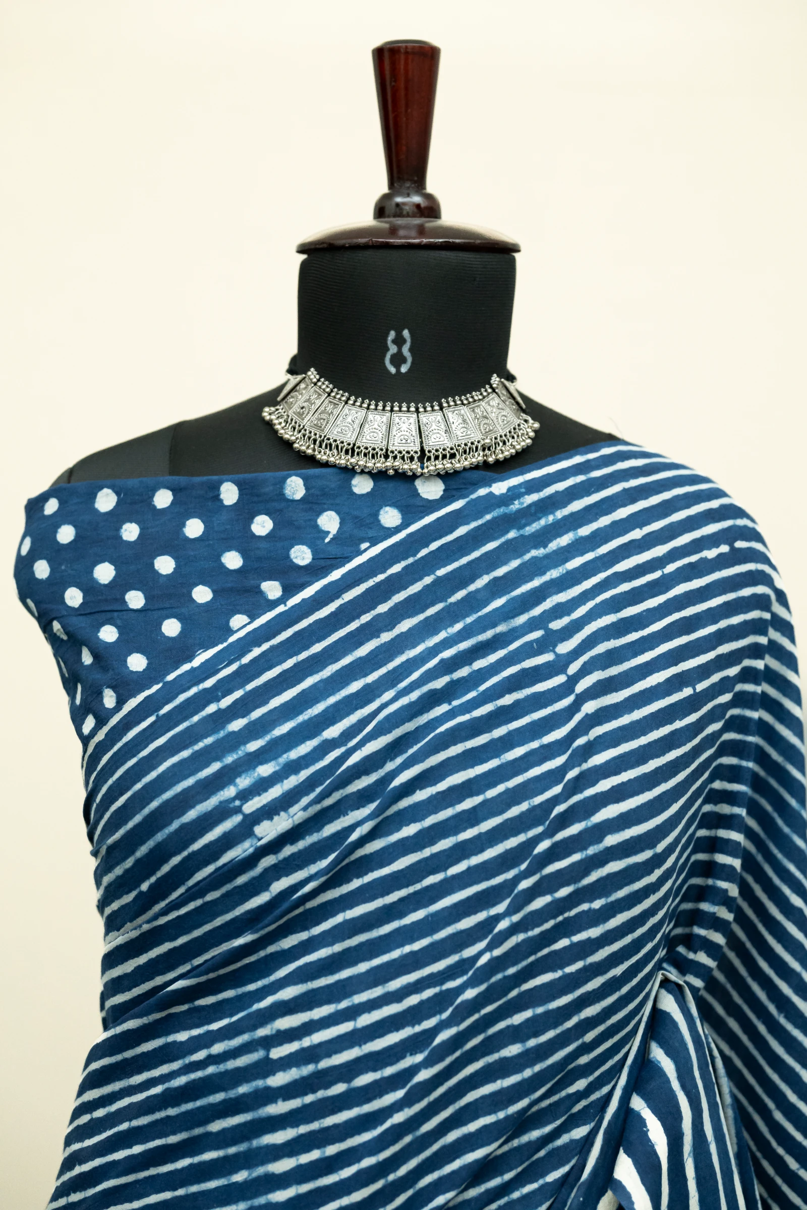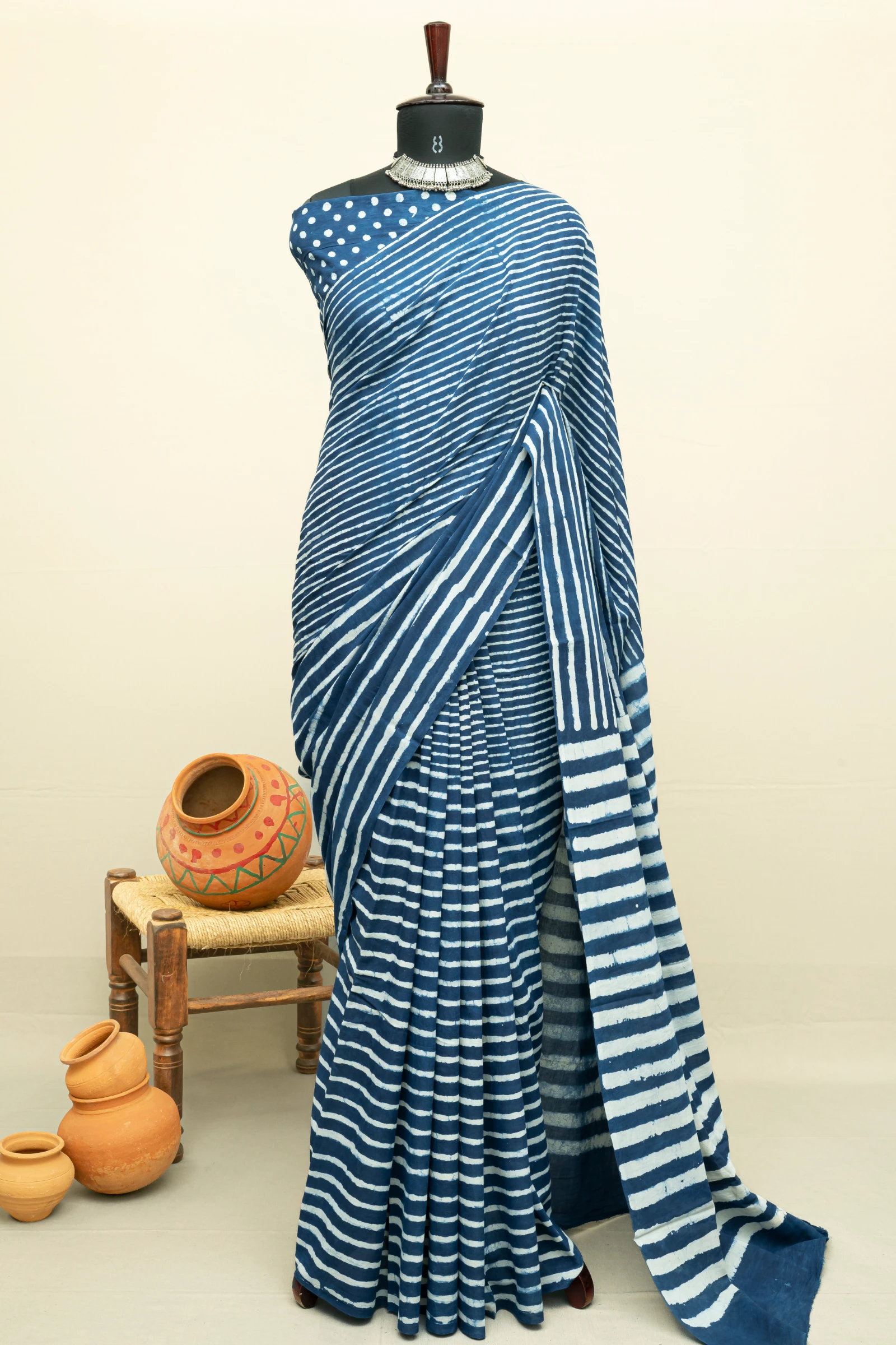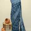 Indigo blue Natural Dyed Hand Block Print Pure Cotton Bagru Saree