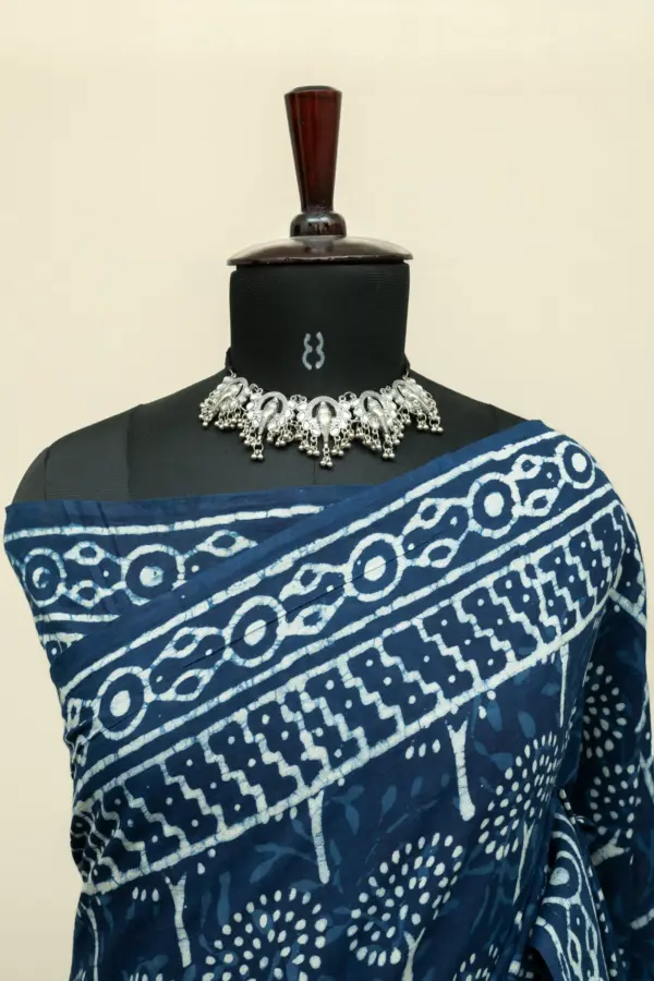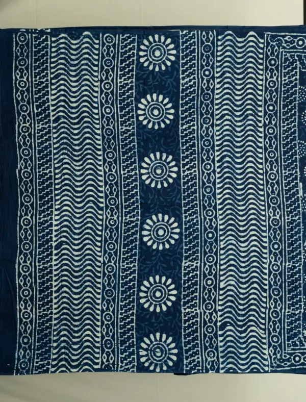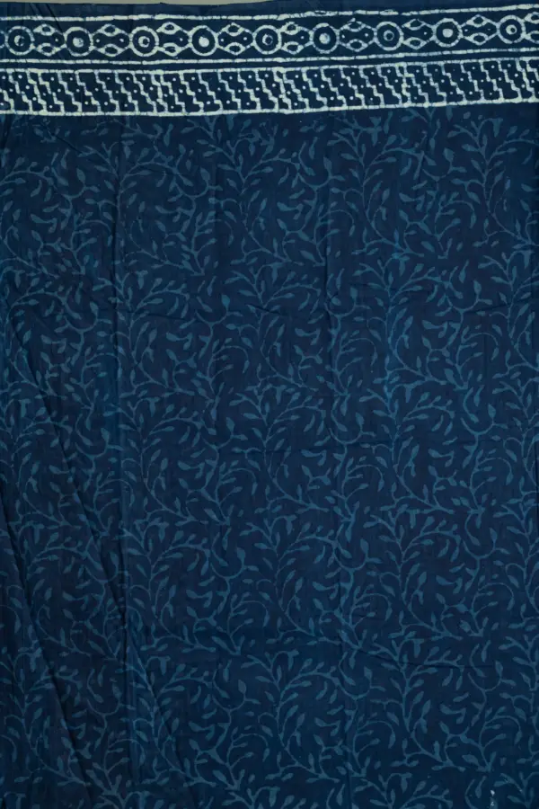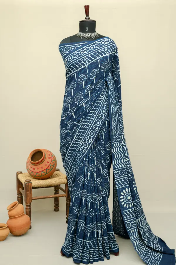 Indigo Blue Natural Dyed Hand Block Print Pure Cotton Bagru Saree
