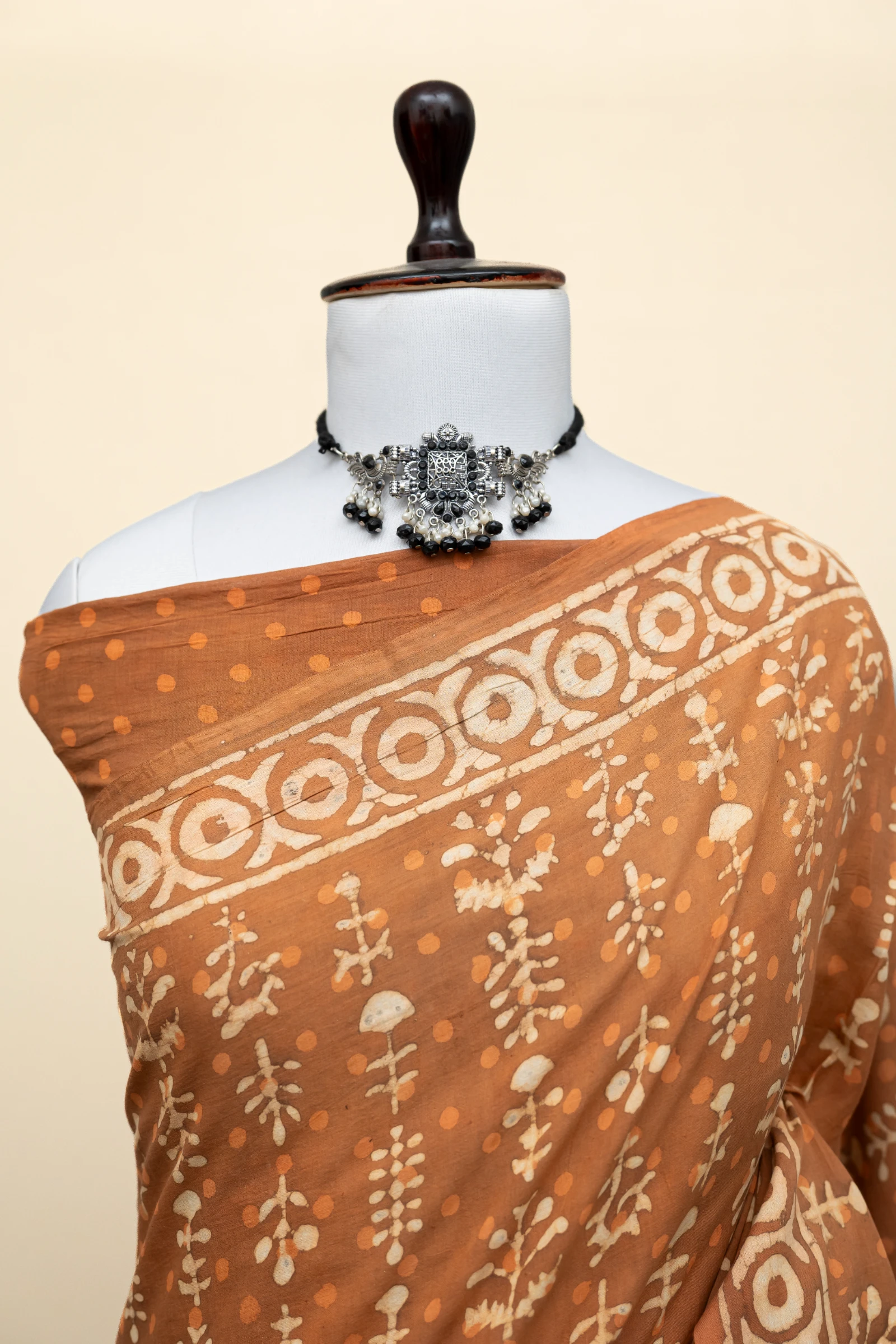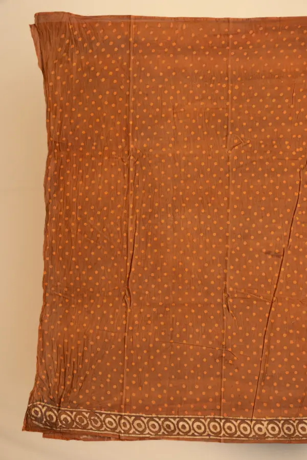 Rusty Natural Dyed Hand Block Print Pure Cotton Bagru Saree