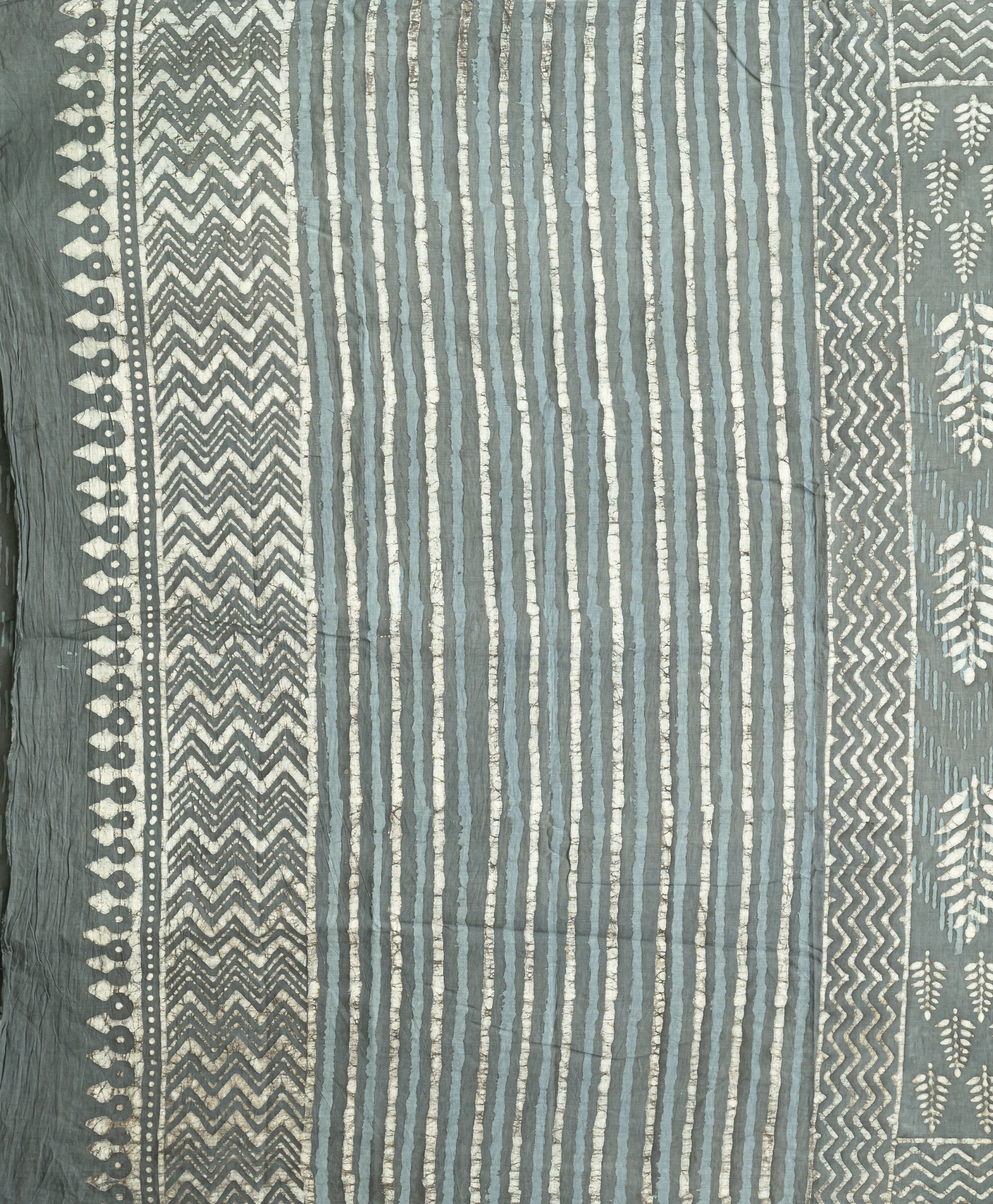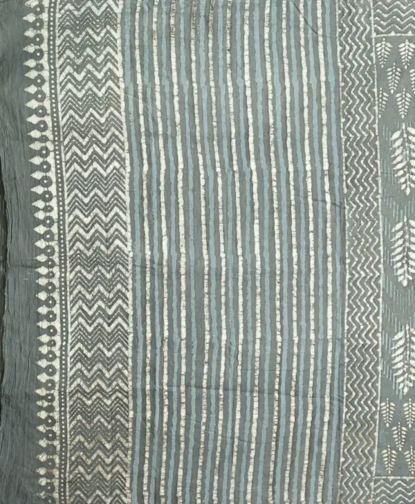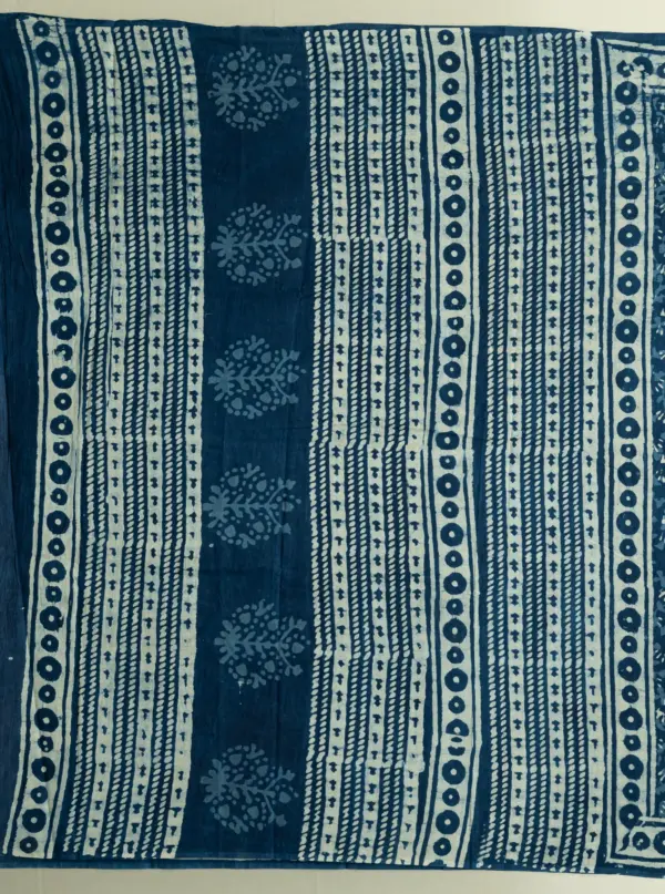 The Ajrakh process is highly intricate, involving multiple stages of precise printing and repeated dyeing to achieve its signature geometric patterns, deep hues, and exceptional depth—each piece a testament to time-honoured craftsmanship.
