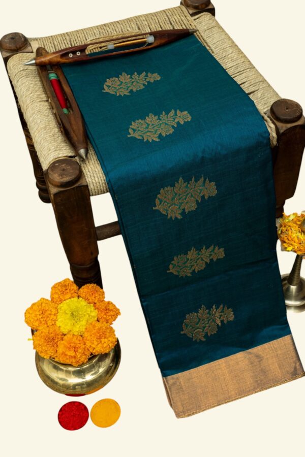 • This saree is handwoven using traditional techniques; minor irregularities or loose threads are a natural outcome of the handcrafted process. These variations reflect the artisan’s touch and enhance the saree’s unique character, not defects.