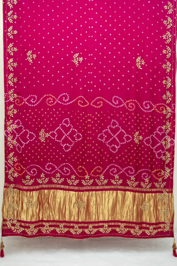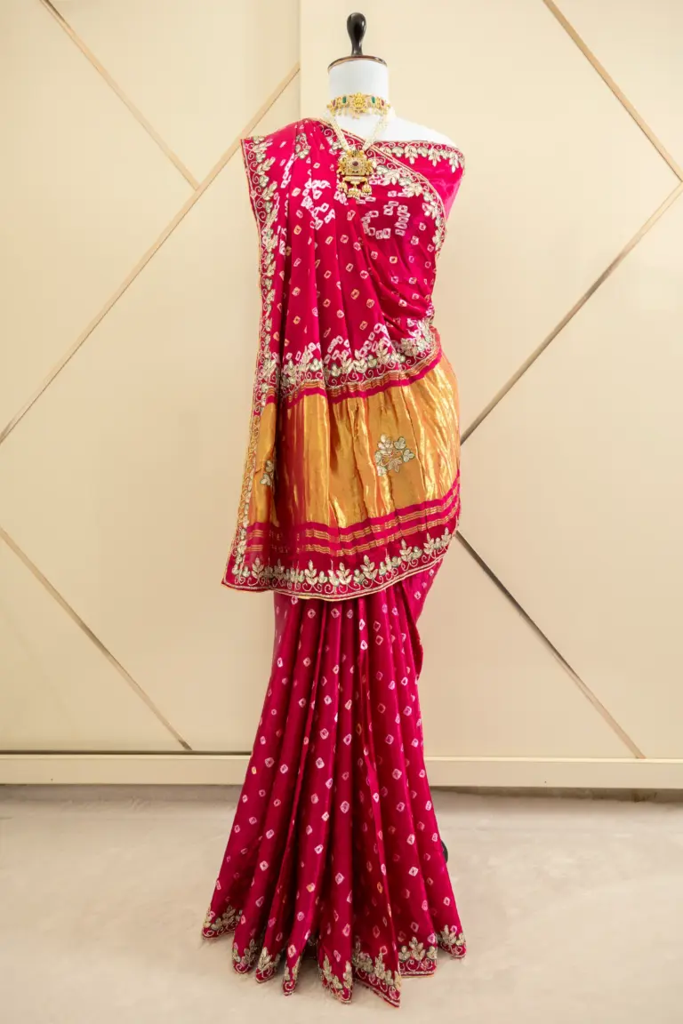 Bandhani, also known as Bandhej, is an ancient Indian tie-and-dye art dating back over 5,000 years, originating in Gujarat and Rajasthan. Created by hand-tying thousands of tiny knots before dyeing, each saree showcases intricate patterns symbolizing tradition, celebration, and artisanal heritage.